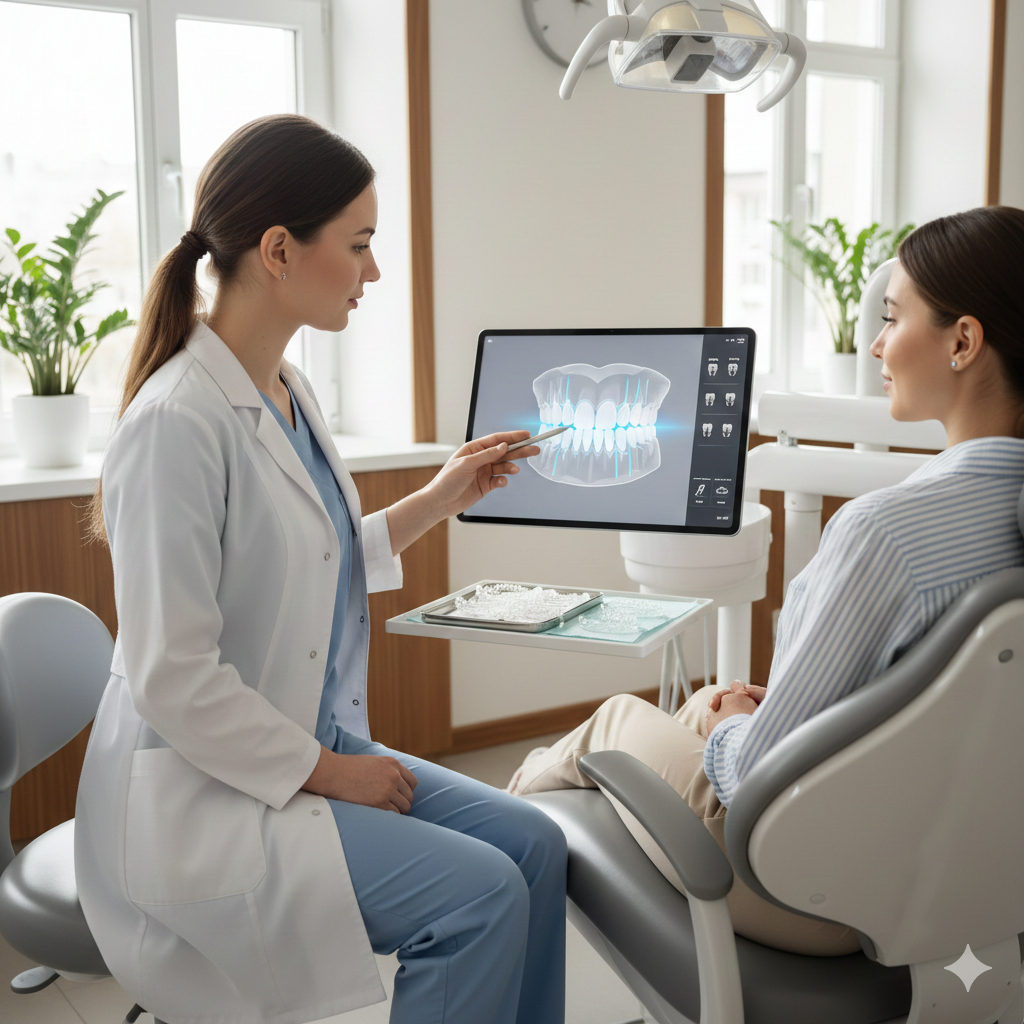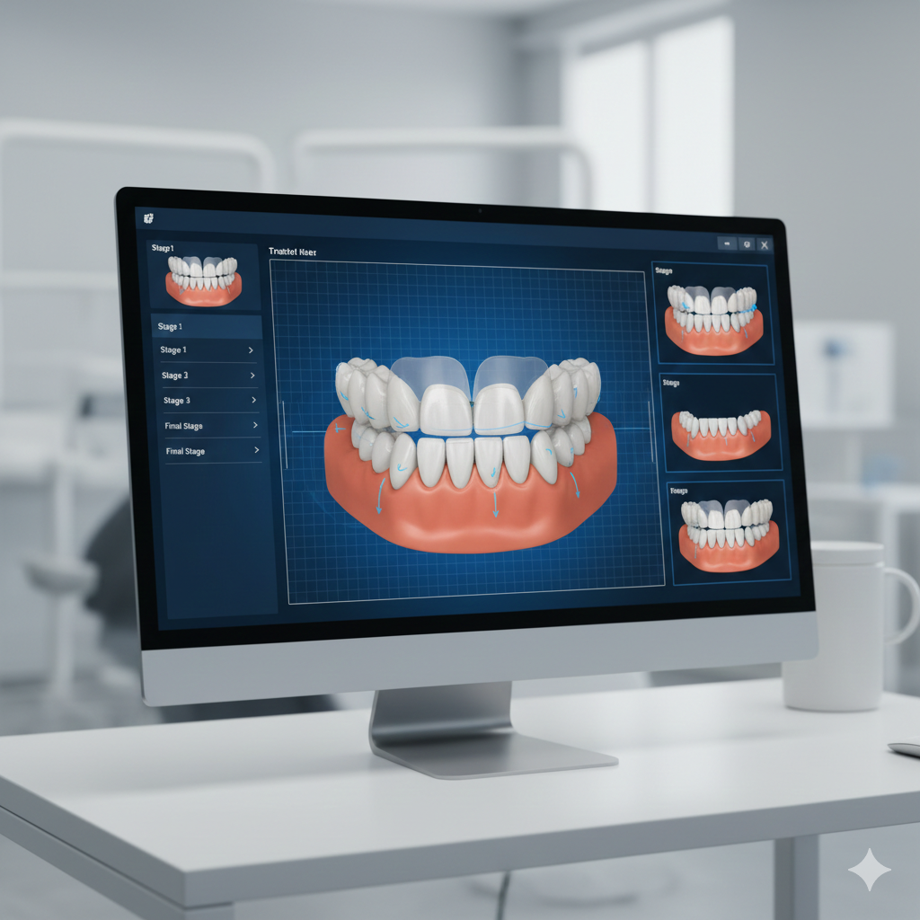 Advanced orthodontic simulation and AI-assisted analysis are used to design a precise treatment plan.